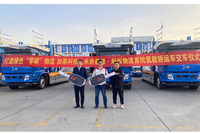 10月25日,由未勢能源聯(lián)合長城商用車如果科技共同開發(fā)制造的“長征氫能轎運(yùn)車”,首批16輛正式交付螞蟻物流,即將投入市場化運(yùn)營,打造首個真正規(guī)模化“跑起來”的 “氫能轎運(yùn)車”示范應(yīng)用場景。